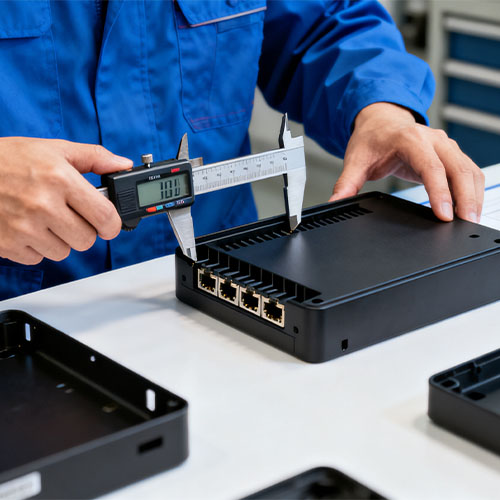 Controle de precisão de instalação: A tolerância dimensional dos furos de instalação do gabinete (furos de parafuso, furos de posicionamento) é de ±0,02 mm, e a coaxialidade do furo é de ≤0,03mm, garantindo encaixe preciso com placas de circuito e radiadores (folga de instalação ≤0,1mm) e evitando danos aos componentes causados por desalinhamento.