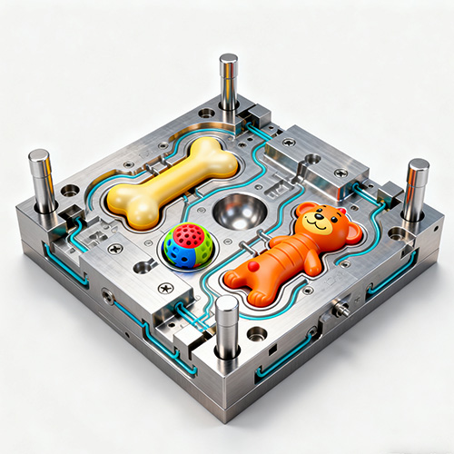 O molde de injeção de brinquedo para animais de estimação é uma ferramenta de precisão usada no processo de moldagem por injeção, que é feita de materiais metálicos (como aço pré-endurecido P20, 718H ou aço para molde de trabalho a quente H13) de acordo com a forma, tamanho e requisitos funcionais específicos de brinquedos para animais de estimação. Seu princípio de funcionamento é que sob a ação da injetora, matérias-primas plásticas (como TPR, PP, ABS, náilon, etc.) em estado fundido são injetadas na cavidade interna do molde sob alta pressão. Depois que o plástico é resfriado e solidificado, o molde é aberto para retirar os brinquedos moldados para animais de estimação, de modo a realizar a produção em lote do "primeiro exame simulado com muitas peças" ou "o primeiro exame simulado com uma peça".
