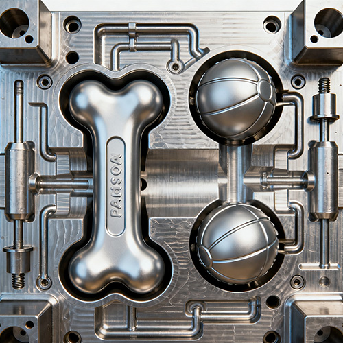 Ao contrário dos moldes de injeção comuns, os moldes de injeção para brinquedos para animais de estimação precisam se concentrar nos cenários especiais de uso de animais de estimação - por exemplo, o design da cavidade do molde precisa evitar bordas e cantos afiados (para evitar arranhões nos animais de estimação), o material do molde precisa suportar desgaste frequente de abertura e fechamento (para atender aos altos requisitos de produção), e alguns moldes também precisam integrar estruturas especiais (como a "cavidade de apito" usada para fazer brinquedos para animais de estimação que fazem som e a "ranhura de textura" usada para fazer brinquedos para mordidas), garantindo que o produto final não atenda apenas à segurança dos animais de estimação padrões, mas também possui propriedades práticas, como resistência à mordida e resistência ao impacto.
