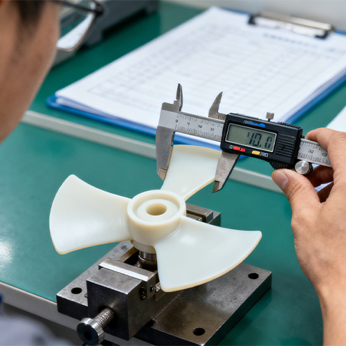 Design leve das pás do ventilador: é usada injeção de parede fina em PP ou ABS, com peso de uma única pá do ventilador ≤ 20g. A força centrífuga é pequena durante a rotação, reduzindo a carga do motor; As bordas das pás do ventilador são arredondadas para evitar a geração de ruído de fluxo de ar durante a rotação;
